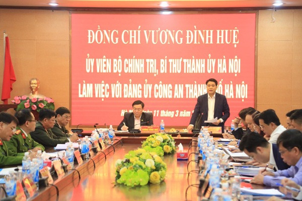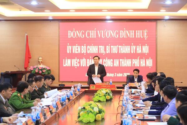 Đồng chí Vương Đình Huệ biểu dương CATP Hà Nội đã chủ động trong công tác chuẩn bị tiến độ tổ chức đại hội trong Đảng bộ CATP và Công an cấp cơ sở. Bí thư Thành ủy gợi mở trong tình hình dịch bệnh Covid-19 như hiện nay, CATP Hà Nội cần chủ động hơn nữa về nhân sự, thời gian chuẩn bị đại hội Đảng các cấp ở cơ sở để hoàn thành nhiệm vụ chính trị.