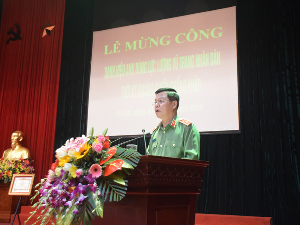 Thiếu tướng Đoàn Duy Khương - Giám đốc CATP Hà Nội phát biểu tại lễ mừng công