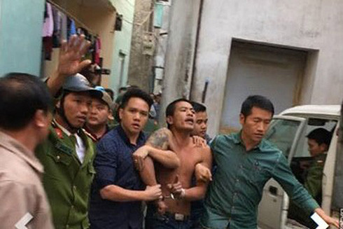 Bị khống chế, đối tượng “ngáo đá” (cởi trần), vẫn tỏ ra hung hăng