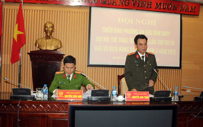 Đặc biệt, liên quan đến trận thi đấu bóng đá trong khuôn khổ giải AFF Cup giữa hai đội tuyển Việt Nam và Campuchia diễn ra trên sân vận động Hàng Đẫy vào ngày 24-11 tới, Đại tá Nguyễn Anh Tuấn chỉ rõ, các lực lượng phải quản lý chặt, không để cổ động viên mang pháo sáng vào sân đốt; đảm bảo tốt tình hình ANTT xung quanh khu vực sân vận động, không để tụ tập hình thành nhóm cổ động viên quá khích, đốt pháo sáng gây ảnh hưởng đến hoạt động thi đấu trên sân…