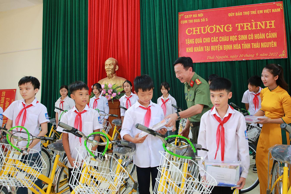 ANTD.VN -Cụm thi đua số 5, CATP Hà Nội phối hợp với Quỹ Bảo trợ trẻ em Việt Nam, Phòng Giáo dục huyện Định Hóa (Thái Nguyên) đã tổ chức tặng những món quà ý nghĩa, thiết thực cho các cháu học sinh có hoàn cảnh khó khăn tại trường THCS Hoàng Ngân và THCS Phú Đình.