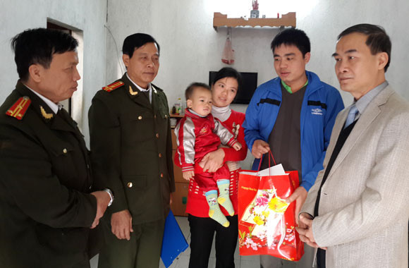 Thiếu tướng Phạm Xuân Bình, Phó Giám đốc CAHN cùng đoàn thăm và tặng quà gia đình Đại tá Nguyễn Công Bộ, Trưởng Công an huyện Mỹ Đức, Hà Nội.