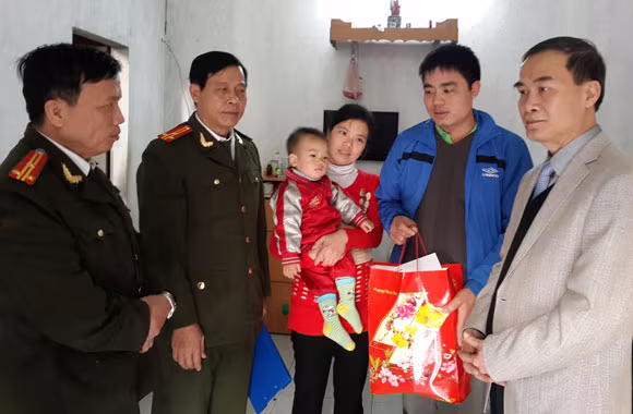 Thiếu tướng Nguyễn Xuân Bình thăm và tặng quà gia đình Thiếu úy Phan Đăng Giáp, Đội CS ĐTTP về TTXH, CAH Thạch Thất, Hà Nội.