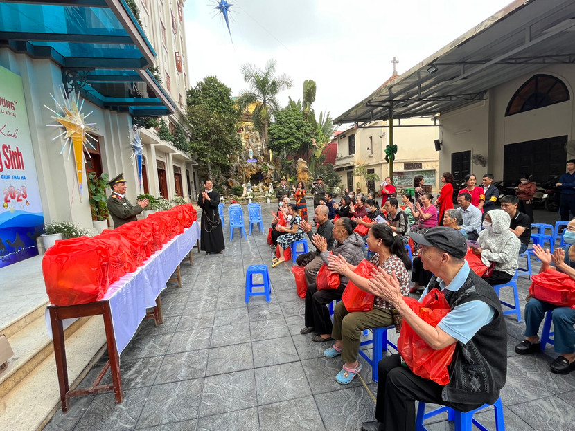 Cũng trong buổi thăm, chúc mừng dịp Giáng sinh năm 2023, CATP Hà Nội đã trao 60 suất quà cho bà con giáo dân có hoàn cảnh khó khăn. Đây là tình cảm cũng như sự quan tâm của CATP Hà Nội đối với giáo dân giáo xứ, mong muốn bà con phần nào vơi bớt những khó khăn, ổn định cuộc sống.