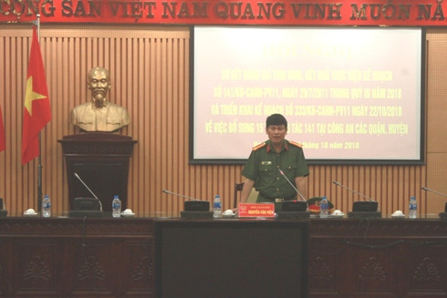 Chiều 23-10, dưới sự chủ trì của Đại tá Nguyễn Văn Viện, Phó Giám đốc CATP Hà Nội, CATP đã tổ chức hội nghị sơ kết đánh giá tình hình, kết quả của lực lượng 141 trong Quý III-2018 và triển khai Kế hoạch số 333/ KH-CAHN-PV11, ngày 22-10-2018 về việc bổ sung 15 Tổ công tác 141 tại Công an các quận, huyện.