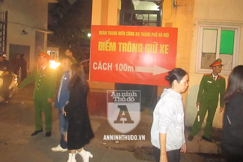 Ngay từ phía đầu ngõ 80 phố Nguyễn Lương Bằng, lực lượng CSGT, Cảnh sát Trật tự đã được triển khai để điều tiết lượng phương tiện ra, vào. Cùng với đó, những tấm biển lớn chỉ dẫn hướng di chuyển vào điểm trông giữ xe miễn phí được đặt ở những vị trí nổi bật.