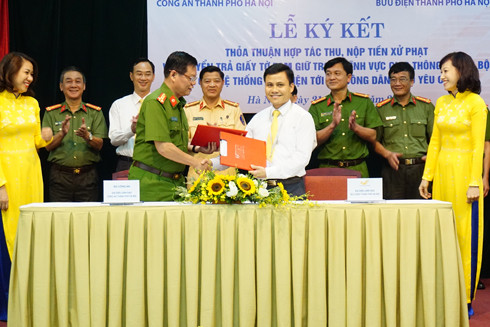 Dự lễ ký kết về phía CATP có Đại tá Đào Thanh Hải, Phó Giám đốc CATP Hà Nội, cùng đại diện phòng chức năng thuộc CATP. về phía Bưu điện Hà Nội có ông Nguyễn Hồng Sơn, Phó Giám đốc phụ trách Bưu điện Hà Nội và đại diện Hội đồng thành viên Tổng công ty Bưu điện Việt Nam. Hai bên đã ký kết, thỏa thuận đưa ra Quy chế thực hiện dịch vụ thu, nộp hộ tiền xử phạt và chuyển phát giấy tờ tạm giữ trong lĩnh vực giao thông đường bộ.