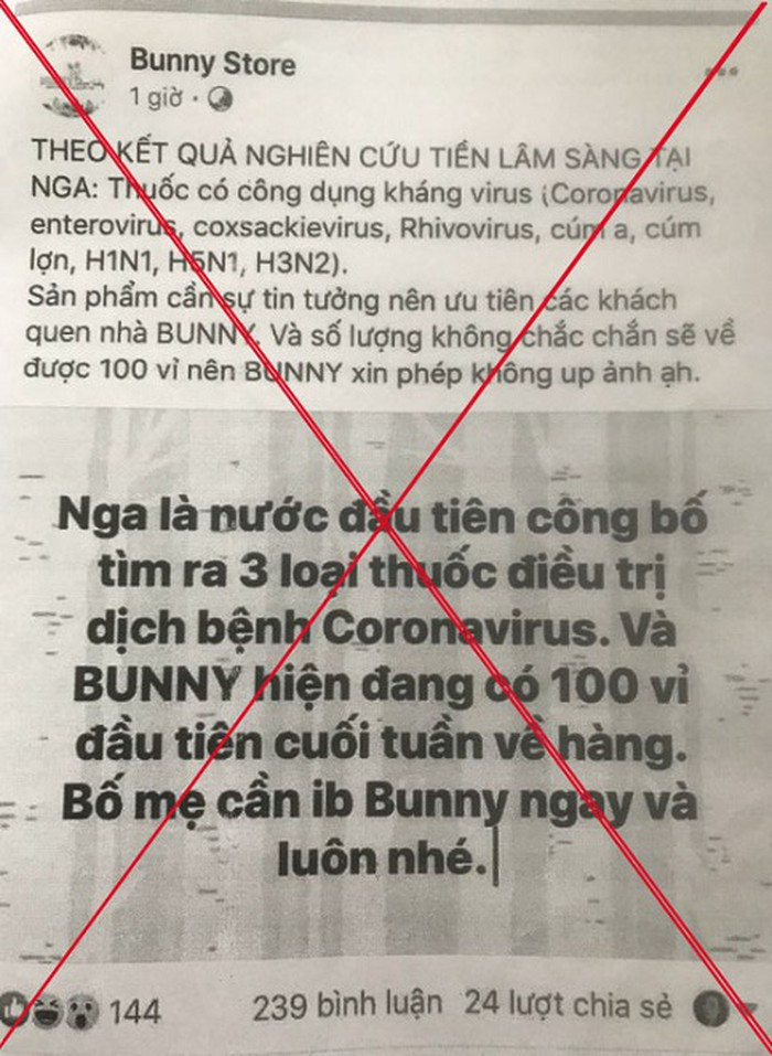 Cụ thể, ngày 11-2, Công an quận Đống Đa, Hà Nội đã lập hồ sơ xử phạt hành chính 12,5 triệu đồng đối với V.L.A (SN 1987, ở phường Mai Dịch, quận Cầu Giấy, Hà Nội). A là quản trị viên một tài khoản facebook bán hàng online, đăng tin sai sự thật về việc đã có thuốc kháng virus Corona (virus Covid 19) và nhận đặt hàng với số lượng lớn, nhằm bán hàng trục lợi.