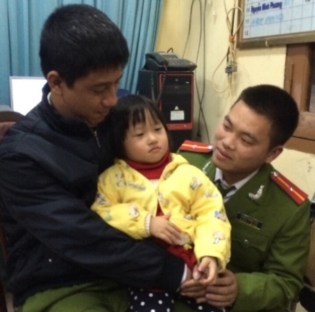 Bé Hằng đã an toàn trong vòng tay các chiến sỹ Công an Hà Nội