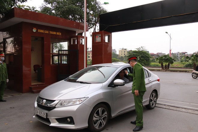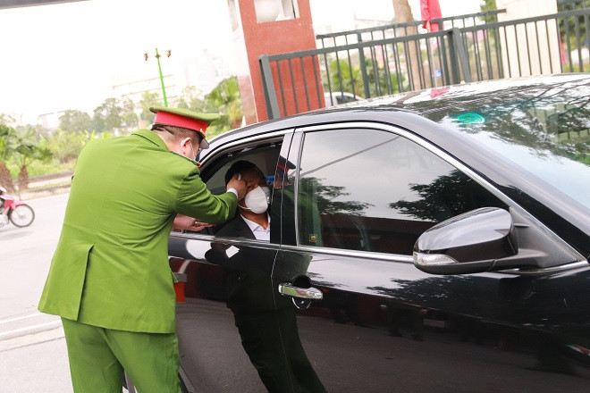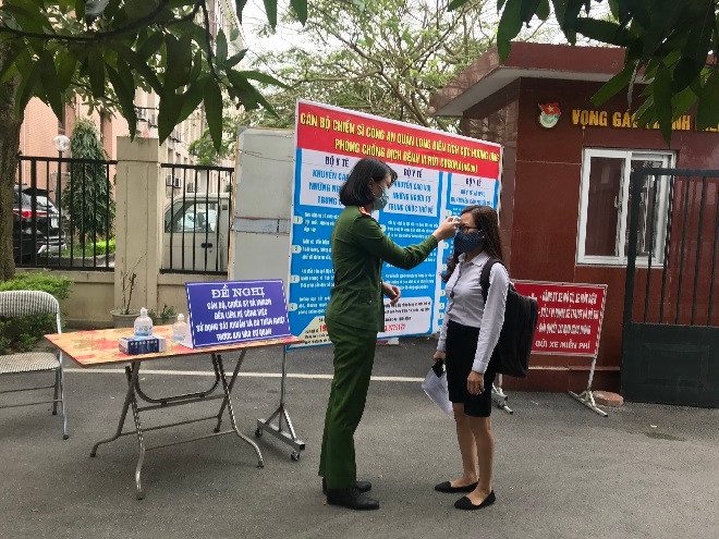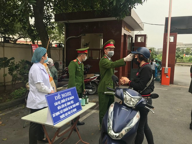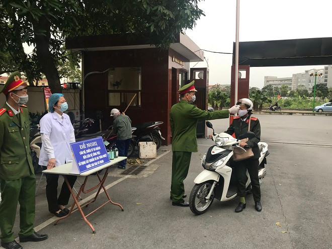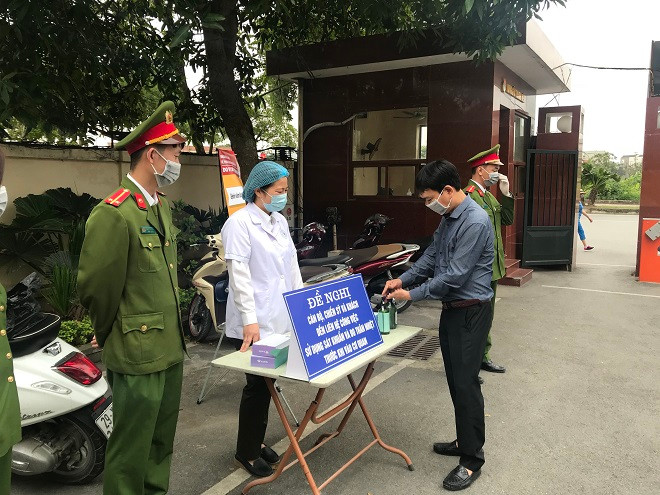 Mỗi ngày có khoảng 800 cán bộ chiến sỹ Công an quận Long Biên được kiểm tra thân nhiệt vào đầu giờ sáng