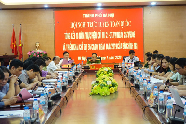 Hội nghị được tổ chức dưới hình thức trực tuyến đến công an các tỉnh, thành phố (hình ảnh tại điểm cầu CATP Hà Nội)
