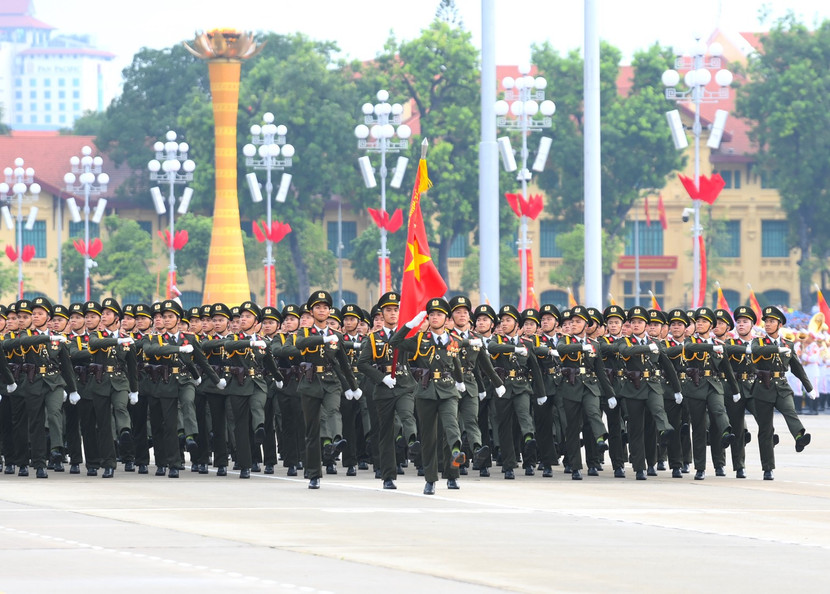 Khối nam sĩ quan An ninh nhân dân trong Lễ diễu binh kỷ niệm 80 năm Cách mạng tháng Tám thành công và Quốc khánh 2/9.