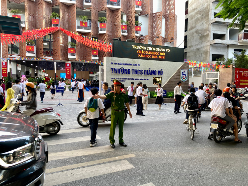 ANTD.VN - Sáng 5/9, Công an phường Giảng Võ, Hà Nội đã triển khai lực lượng, phương tiện thực hiện công tác phân luồng giao thông, bảo đảm an ninh trật tự tại các khu vực cổng trường học trên địa bàn, góp phần bảo đảm cho Lễ khai giảng năm học 2025 - 2026 diễn ra an toàn, thông suốt.