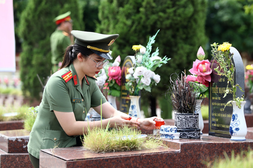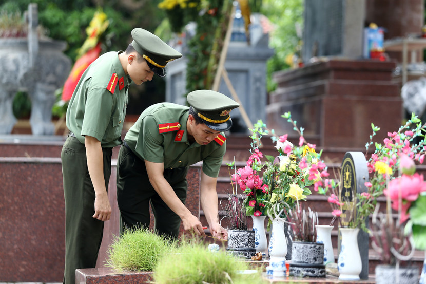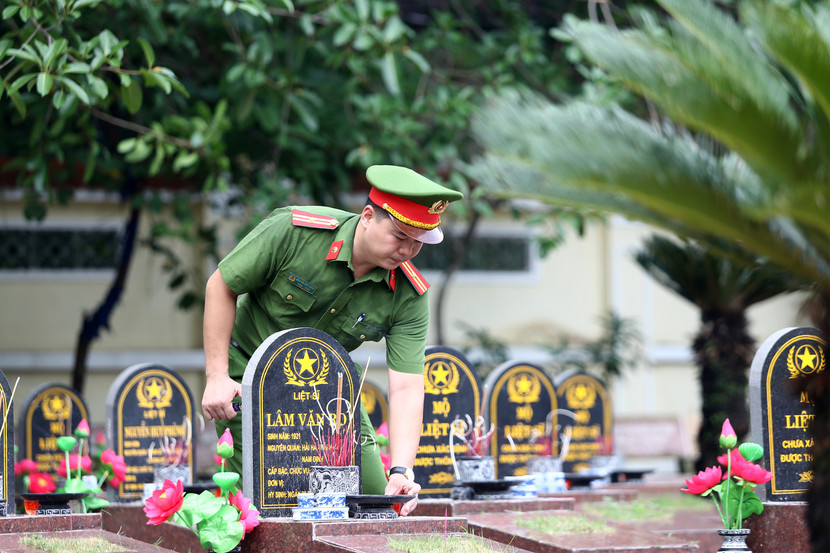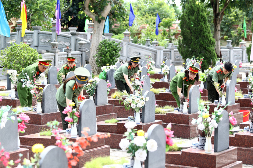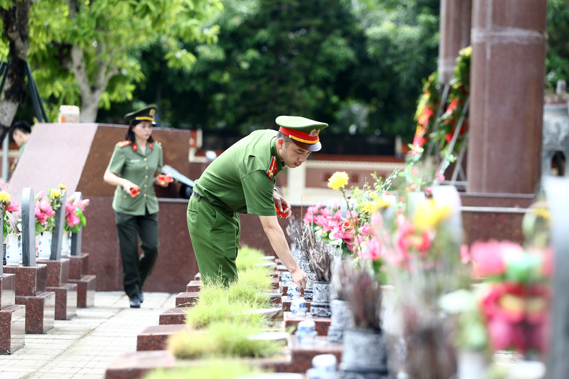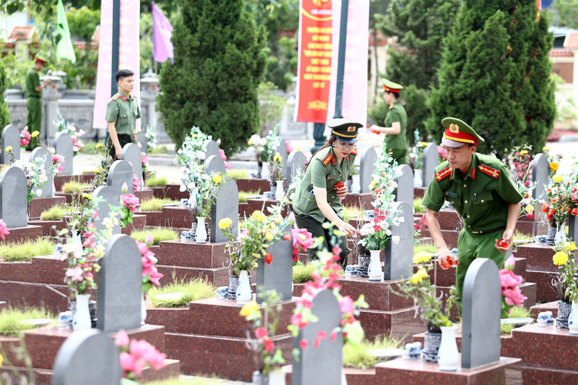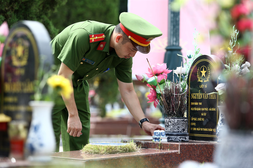 Cũng tại 2 nghĩa trang liệt sĩ, các chiến sĩ đã cùng nhau chỉnh trang khuôn viên, thắp hương và thắp nến tri ân các Anh hùng liệt sĩ - những người đã hy sinh vì sự nghiệp giải phóng dân tộc, bảo vệ Tổ quốc. Lễ viếng không chỉ là sự tri ân, mà còn là một hình thức giáo dục truyền thống "Uống nước nhớ nguồn", "Đền ơn đáp nghĩa" đầy ý nghĩa cho thế hệ hôm nay, đặc biệt là lực lượng cán bộ, chiến sĩ trẻ.