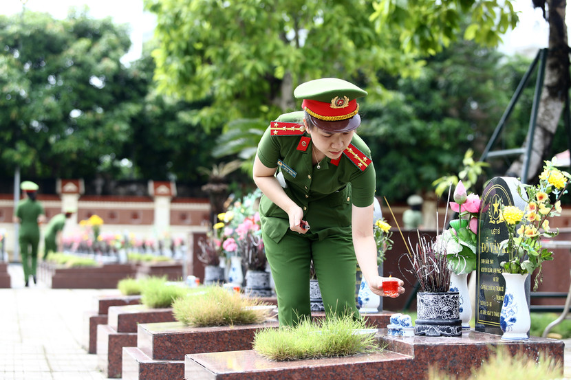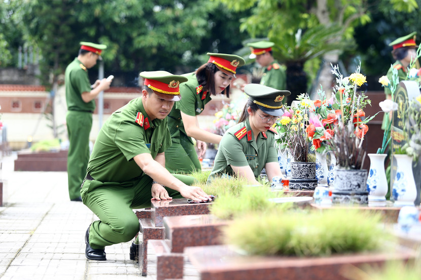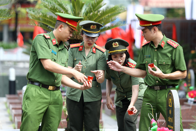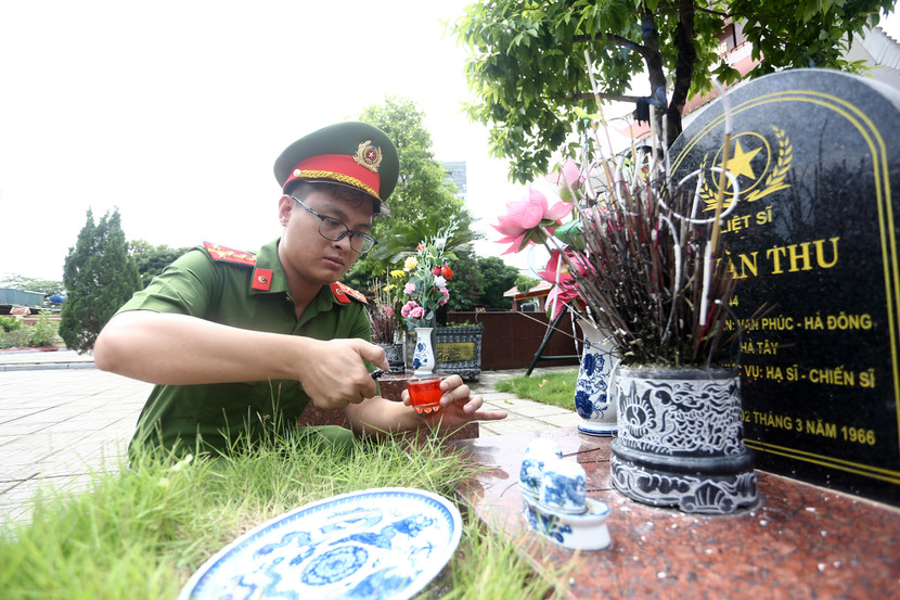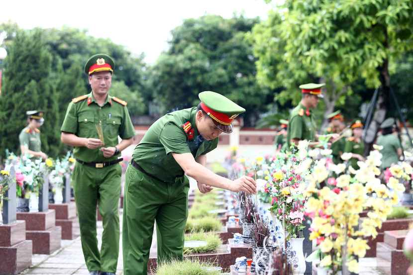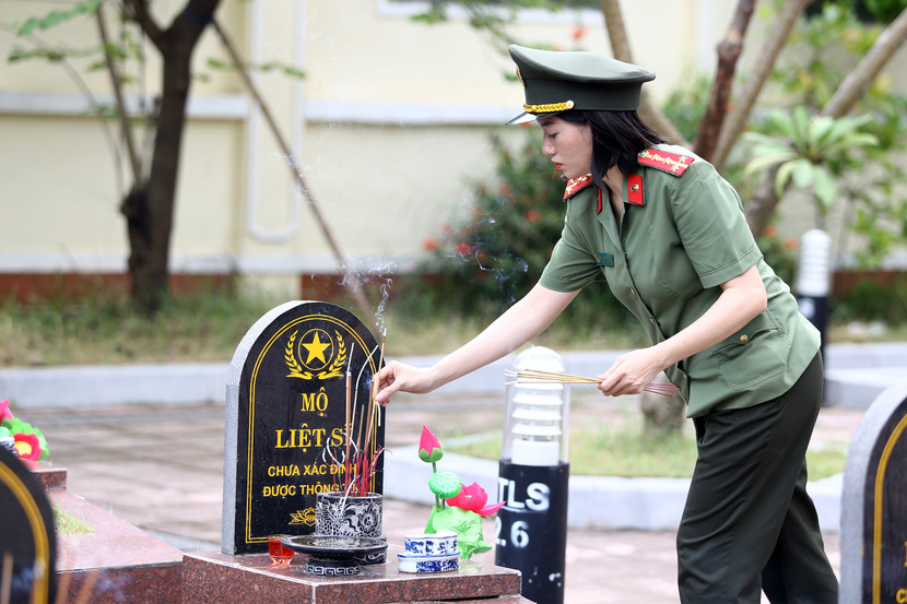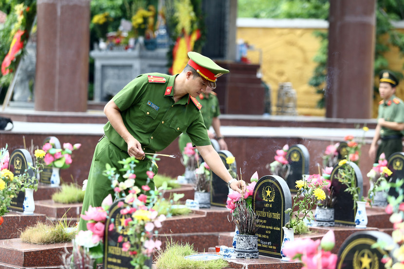 | Thắp những nén hương thơm, cán bộ, chiến sĩ Công an phường Hà Đông nguyện tiếp nối truyền thống, giữ gìn phẩm chất người chiến sĩ Công an nhân dân, quyết tâm giữ vững an ninh trật tự, vì một cuộc sống bình yên, an toàn cho nhân dân |