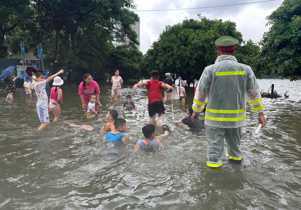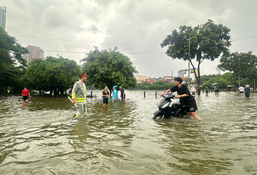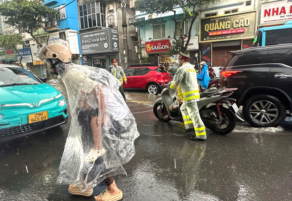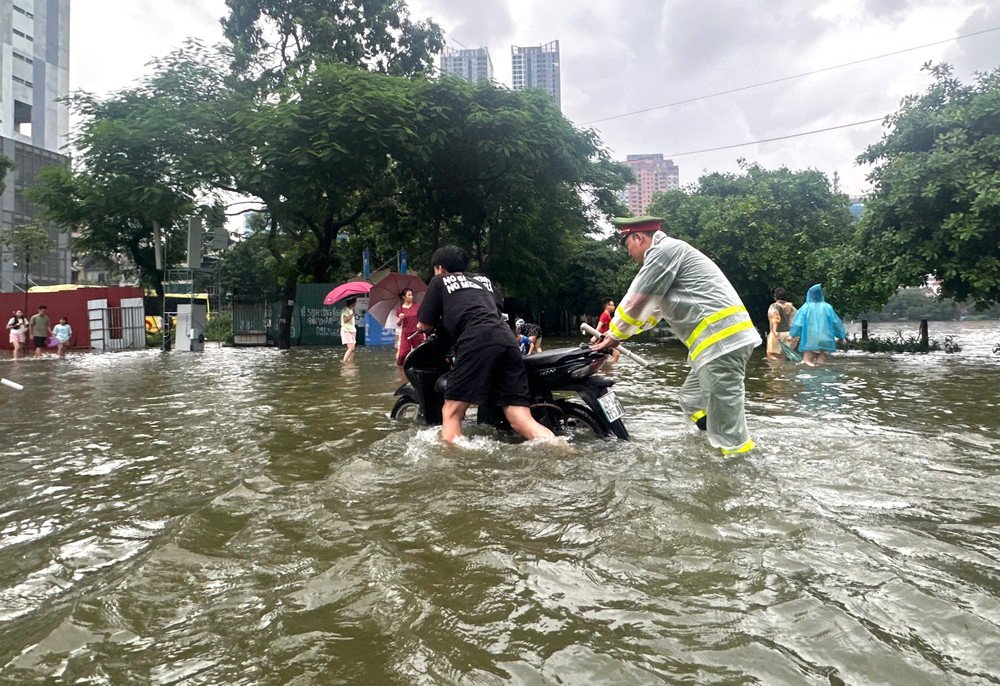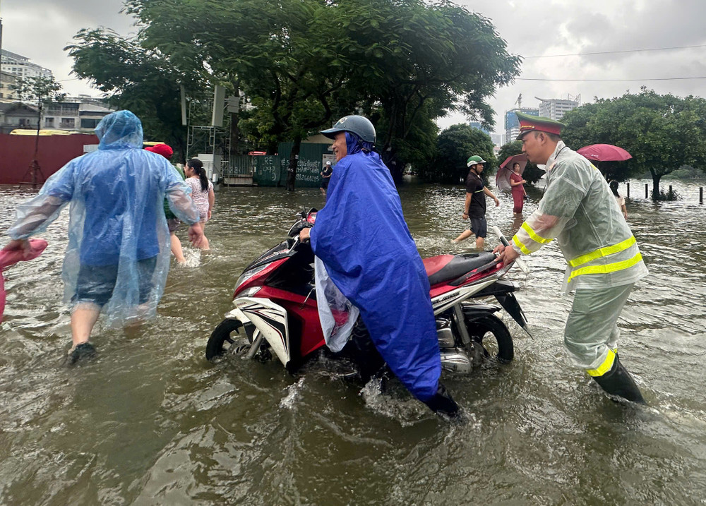 ANTD.VN - Ngày 26-8, do ảnh hưởng của bão số 5 khiến nhiều tuyến phố ở phường Hà Đông (Hà Nội) bị ngập sâu, hàng loạt xe chết máy, việc đi lại của người dân gặp nhiều khó khăn. Giữa dòng nước ngập, những chiến sĩ Công an phường Hà Đông đã không quản mưa gió, trực tiếp đẩy xe giúp dân, dìu cụ già đến nơi an toàn, để lại hình ảnh đẹp, ấm áp nghĩa tình.