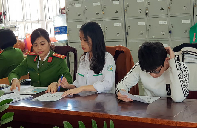 Do đã có kế hoạch phối hợp từ trước giữa Đội Cảnh sát QLHC về TTXH - CAQ Ba Đình và Ban Giám hiệu trường THCS Nguyễn Tri Phương, nên các thủ tục khai báo, chụp ảnh, lấy vân tay nhận diện… được tiến hành nhanh chóng.
