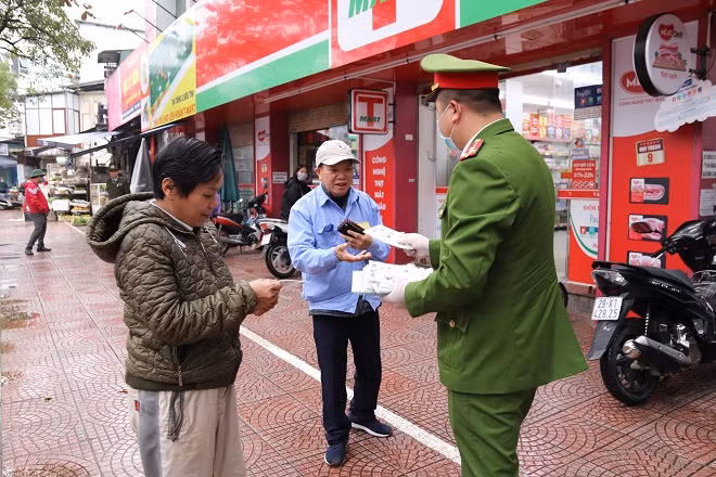 Chương trình phát khẩu trang miễn phí cho người dân tại các địa điểm tập trung đông người của Công an quận Long Biên