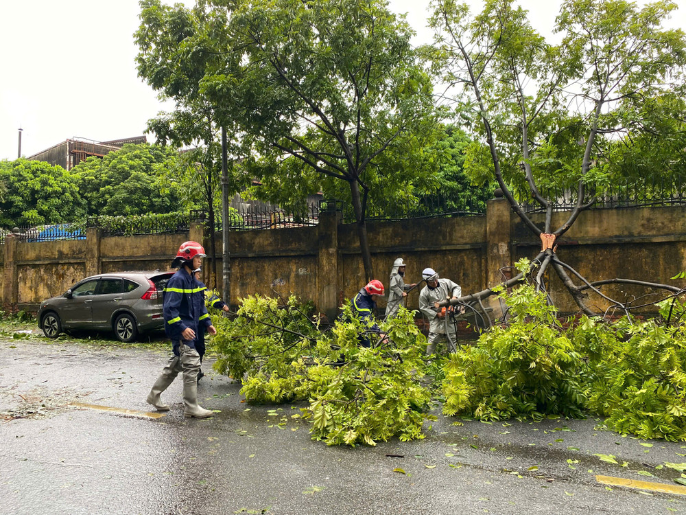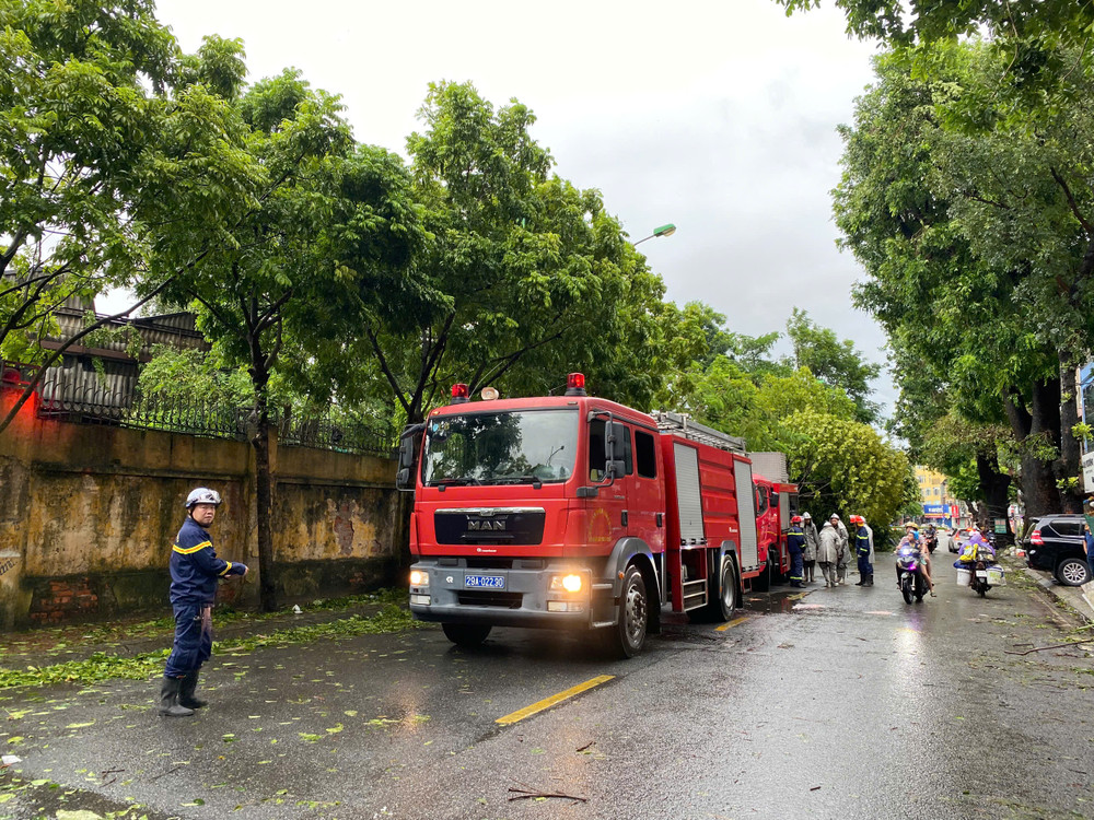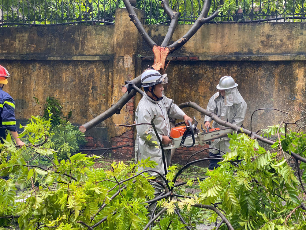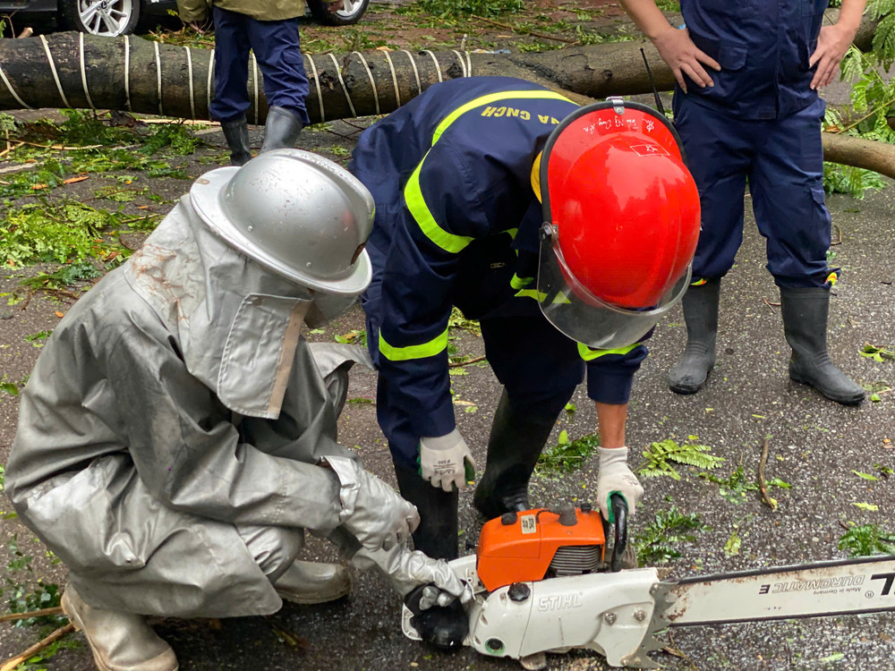 Cảnh sát PCCC và CNCH gồng mình xử lý cây đổ trong mưa bão