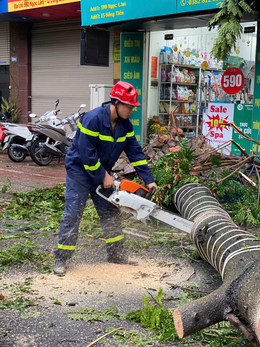 Công an quận Long Biên thông đêm, xuyên sáng khắc phục thiệt hại do bão