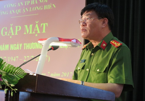Đại tá Vũ Văn Hùng - Trưởng CAQ Long Biên phát biểu tại buổi lễ tri ân