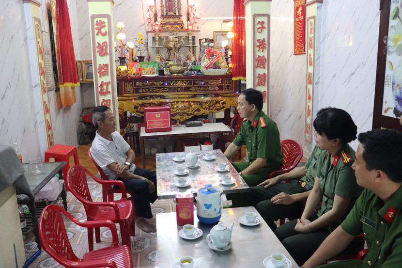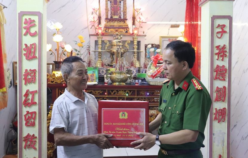 Thay mặt Đảng uỷ, Ban Giám đốc CATP, Đại tá Lê Văn Tuân - Phó Giám đốc CATP gửi tới thân nhân Liệt sĩ Trần Bình món quà tri ân