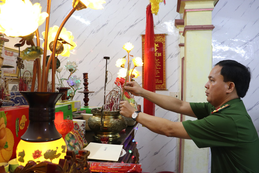 Đại tá Lê Văn Tuân - Phó Giám đốc CATP Hà Nội thắp hương tưởng nhớ liệt sỹ Trần Bình