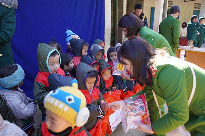 Cùng với sự giúp sức, hỗ trợ của Bộ đội biên phòng tại Đồn biên phòng Đồng Văn, đoàn thiện nguyện từ Thủ đô Hà Nội đã đến được tới những điểm trường xa xôi, heo hút của xã Lũng Táo, mỗi món quà đều được đoàn viên thanh niên và hội viên phụ nữ chuẩn bị rất kỹ lưỡng với 500 áo khoác ấm, 200 bát, thìa, đệm, chăn, mũ len, găng tay, tất, thảm trải sàn… để dành tặng cho các điểm trường.