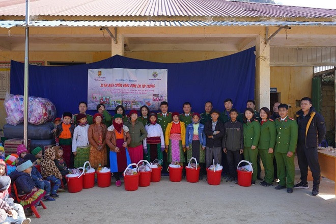 Cán bộ chiến sỹ Phòng Cảnh sát điều tra tội phạm về ma túy, Công an thành phố Hà Nội đã đóng góp gần 500 suất quà tặng học sinh mầm non tại các điểm trường, 10 hộ gia đình có hoàn cảnh khó khăn và 12 cháu học sinh là con nuôi Đồn biên phòng Đồng Văn.