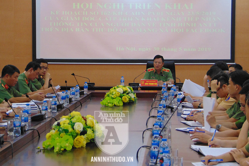Chiều 30-5, CATP Hà Nội đã tổ chức hội nghị triển khai Kênh tiếp nhận thông tin của người dân về tình hình an ninh trật tự trên địa bàn Thủ đô qua mạng xã hội Facebook. Thiếu tướng Đào Thanh Hải - Phó Bí thư Đảng ủy, Phó Giám đốc CATP chủ trì hội nghị.