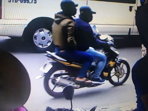 Hai nghi can cướp ngân hàng An Bình đi xe máy bị camera khu vực ghi lại ngày 31-3