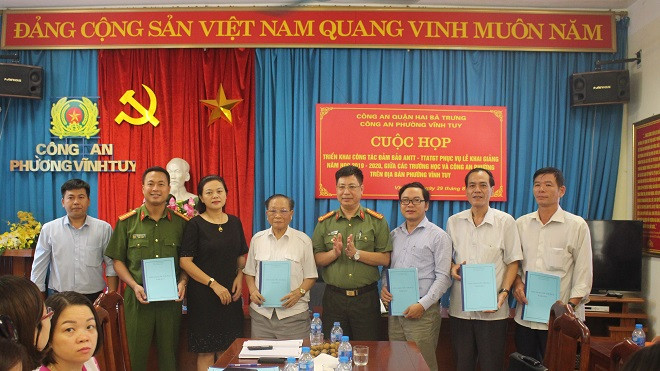 Tại hội nghị, Công an phường Vĩnh Tuy đã thông báo tình hình trật tự an toàn giao thông và trật tự đô thị tại khu vực cổng các trường. Cùng với đó, đại diện các trường cũng đã nêu ý kiến đóng góp, trao đổi để việc phối hợp đạt hiệu quả.