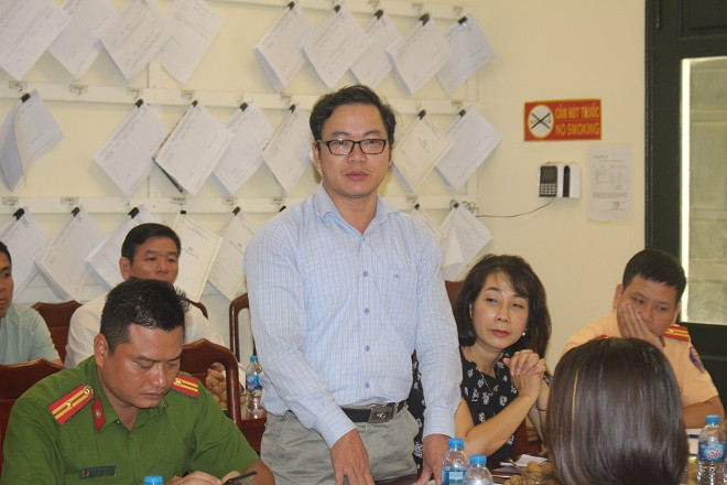 Thầy Nguyễn Văn Tám, Hiệu trưởng Trường THCS Vĩnh Tuy đóng góp ý kiến cho Công an phường
