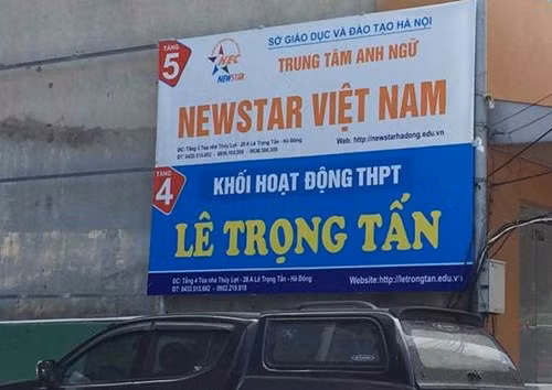 Biển quảng cáo về điểm trường chui tại 28A Lê Trọng Tấn, Hà Đông thời điểm tháng 6-2016