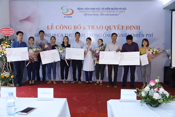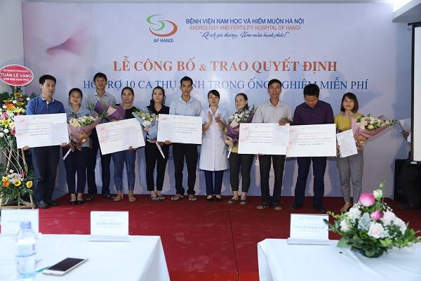 Sáng nay, 21-8, Bệnh viện chuyên khoa Nam học và Hiếm muộn Hà Nội đã công bố và trao quyết định hỗ trợ 10 ca thụ tinh trong ống nghiệm (TTTON) miễn phí cho 10 cặp vợ chồng có hoàn cảnh đặc biệt khó khăn.