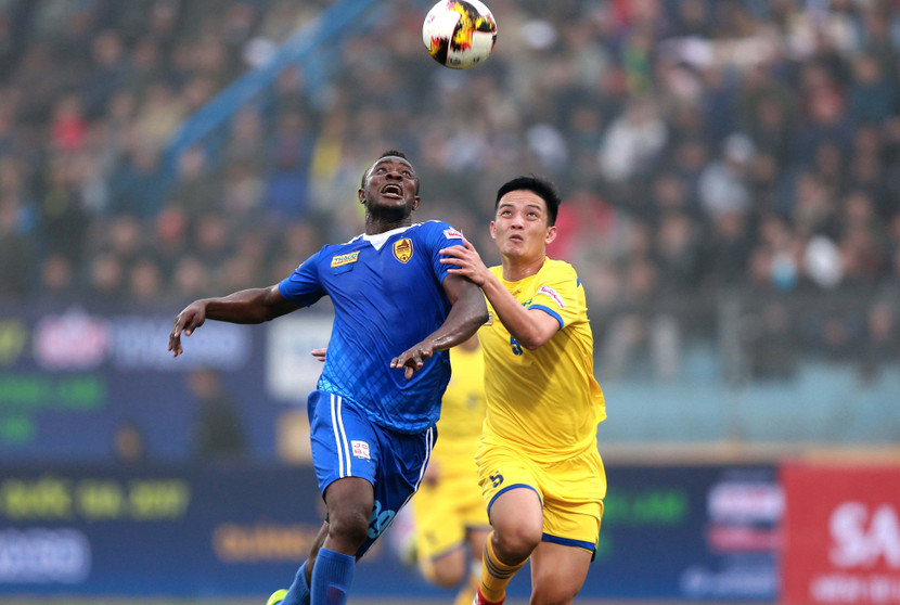 Đương kim vô địch Quảng Nam (áo xanh) là đội bóng được chú ý tại V-League năm nay