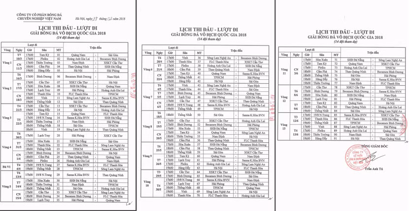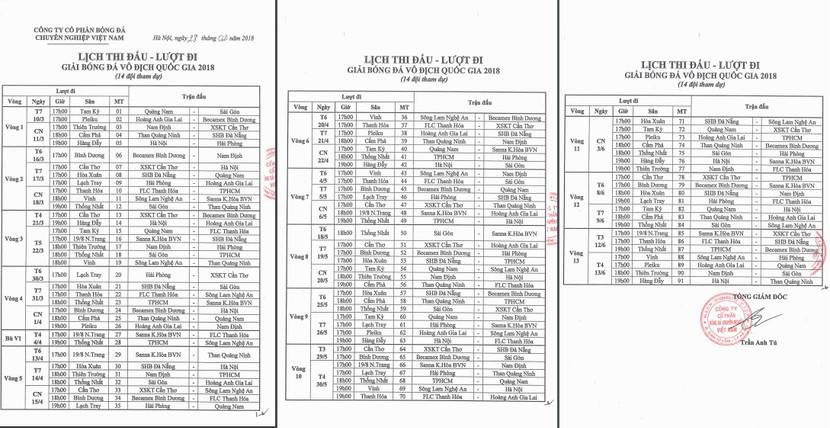 Lượt đi V-League 2018 với 13 vòng đấu sẽ trải đều từ ngày 10-3 tới ngày 13-6. Sau đó các đội dự kiến được nghỉ 1 tháng, trước khi bước vào thi đấu lượt về. Vòng đấu cuối cùng mùa giải dự kiến diễn ra ngày 29-9.