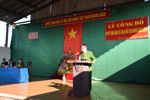 Đại tá Đặng Hữu Tín - Giám thị Trại tạm giam số 2 công bố Quyết định đặc xá của Chủ tịch nước - 2016