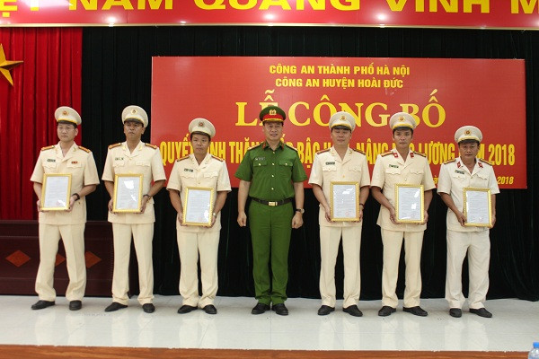 Niên hạn năm 2018, CAH Hoài Đức có 74 CBCS được thăng cấp bậc hàm và nâng bậc lương. Đây là sự quan tâm, đánh giá quá trình phấn đấu, rèn luyện, trưởng thành của mỗi CBCS, là sự ghi nhận của Đảng, Nhà nước, của ngành Công an và nhân dân, là niềm vinh dự, tự hào của mỗi CBCS - CAND.