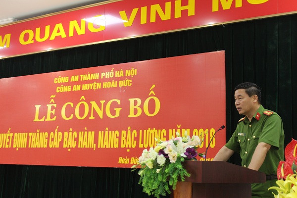 Đại tá Đỗ Đức Quang, Trưởng CAH Hoài Đức trao quyết định thăng cấp bậc hàm cho CBCS