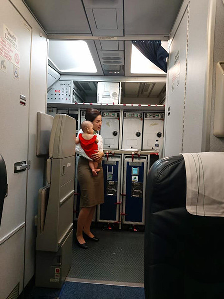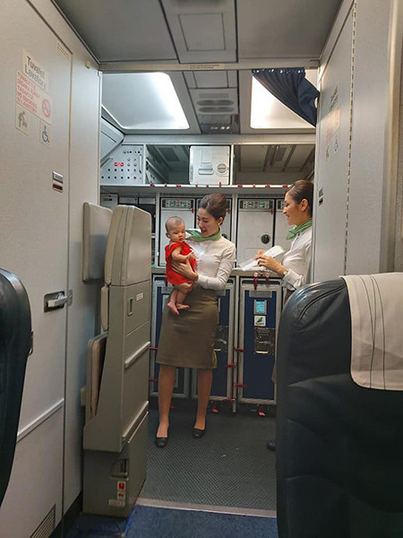 Hình ảnh nữ tiếp viên hàng không dịu dàng bế và nựng em bé đã ghi điểm trọn vẹn với cộng đồng mạng
