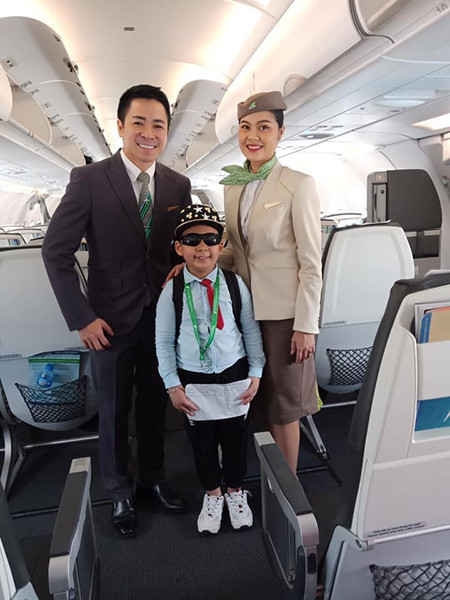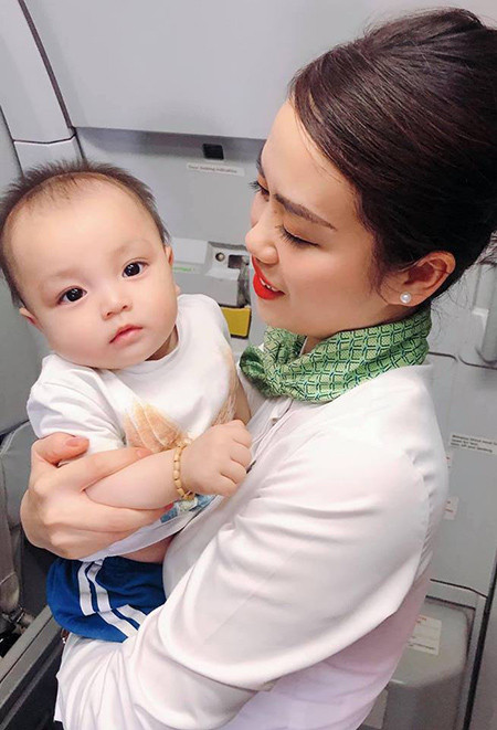"Hai mẹ con mình đi với nhau, tay xách nách mang. Các bạn tiếp viên đã nhanh tay tới đỡ hành lý giúp mình và để lên cabin. Thật sự thấy vui và cảm kích lắm" – Facebook Hoa Cao chia sẻ.