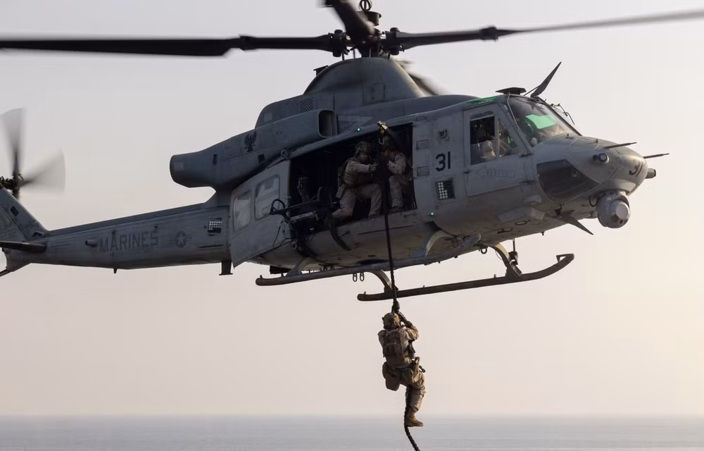 Thủy quân lục chiến Mỹ huấn luyện trực thăng UH-1Y Venom tiếp cận mái nhà, chuẩn bị cho chiến tranh đô thị