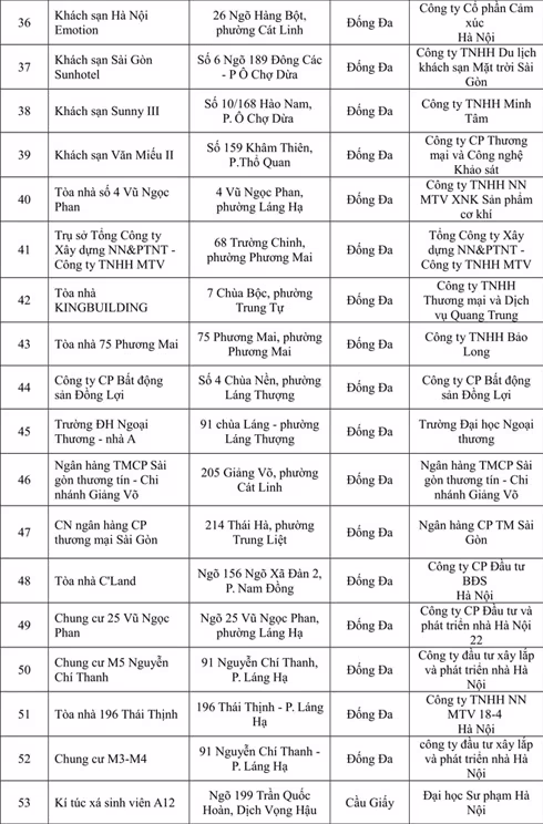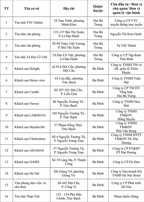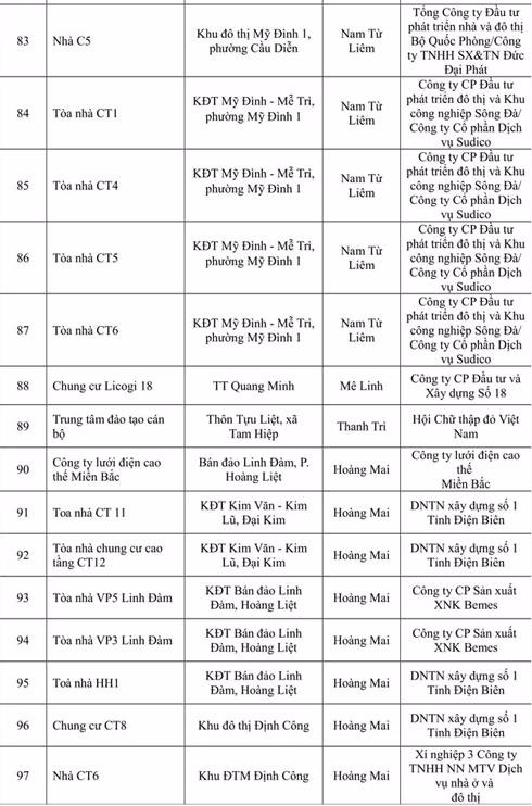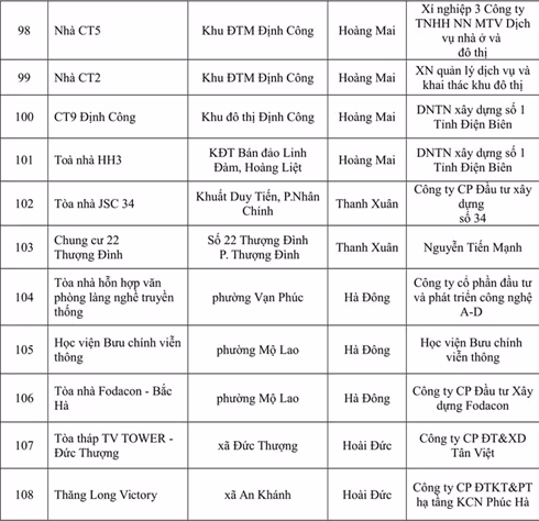 Danh sách cơ sở công trình nhà cao tầng tại Hà Nội còn tồn tại, vi phạm về PCCC