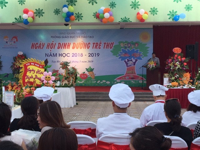 Ngày 23-3, tại quận Tây Hồ, Ngày hội dinh dưỡng đã được tổ chức với sự tham gai của tất cả các trường mầm non trên địa bàn quận cùng các đơn vị cung cấp thực phẩm sạch truyền thống và các bậc phụ huynh.