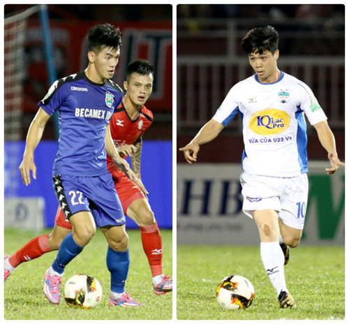 Ngày 8-10, Công Phượng (ảnh phải) và Tiến Linh sẽ đối đầu trực tiếp trong cuộc đua Cầu thủ nội ghi nhiều bàn thắng nhất V-League 2018