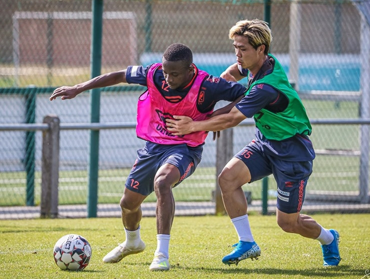 Công Phượng (phải) tích cực luyện tập trước vòng 5 JPL