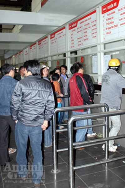 Chạy ngược về ga Hà Nội, không khí Tết vẫn còn hiển hiện ở hai tấm băng-rôn cỡ lớn, chăng ngoài mặt tiền sảnh, hướng về phía phố Trần Hưng Đạo. Bên trong, các quầy bán vé, thu ngân…đã hoạt động hết công suất, đảm bảo lịch trình chạy tàu, phục vụ hàng vạn người di chuyển ra Bắc, vào Nam. Tương tự là cảnh tượng ở bến xe phía Nam, do đặc thù, trước và sau Tết đều là thời gian cao điểm người dân di chuyển từ Hà Nội- về quê và ngược lại, nên từ ban giám đốc, nhân viên văn phòng, đến nhân viên bán vé nơi đây đều phải làm việc cật lực.