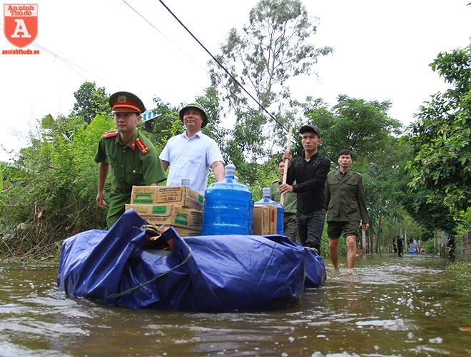 Công an Hà Nội giúp đỡ nhân dân vùng ngập tại huyện Chương Mỹ