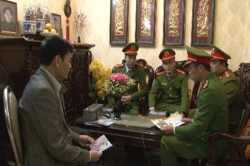 Cảnh sát khu vực tuyên truyền PCCC tại một hộ dân ở khu HH Linh Đàm